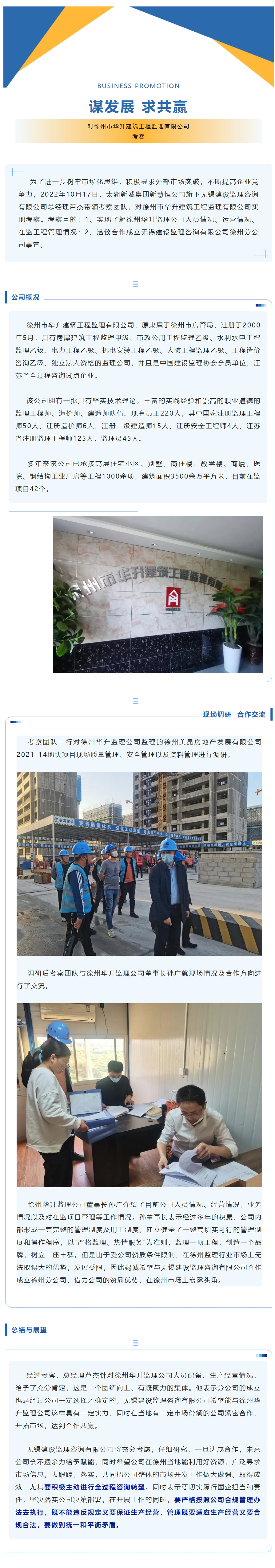 谋发展 求共赢 —— 公司对徐州市华升建筑工程监理有限公司考察
