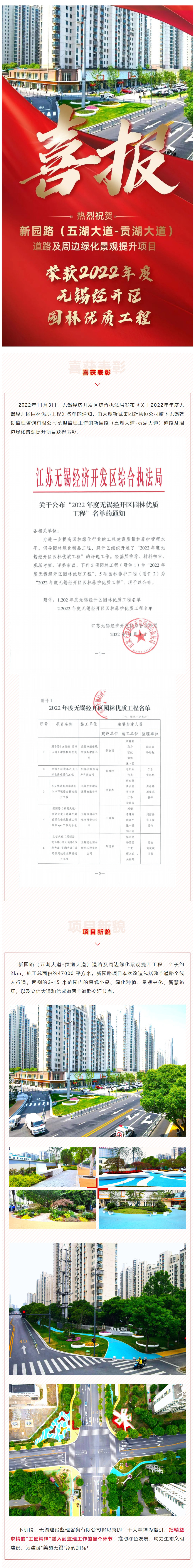 喜报!新园路(五湖大道-贡湖大道)道路及周边绿化景观提升项目获得2022年度无锡经开区园林优质工程
