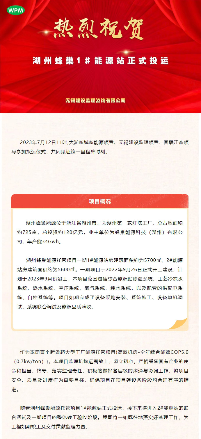 湖州蜂巢能源托管项目1#能源站正式投运仪式