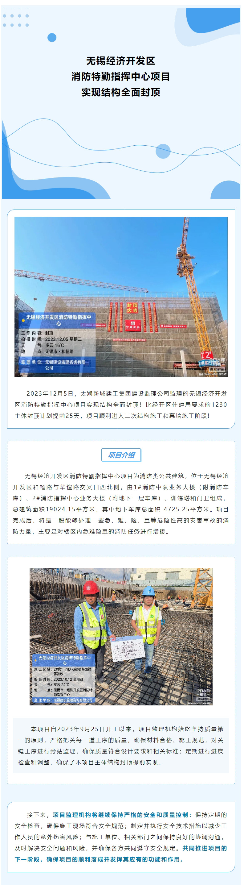无锡经济开发区消防特勤指挥中心项目实现结构全面封顶!