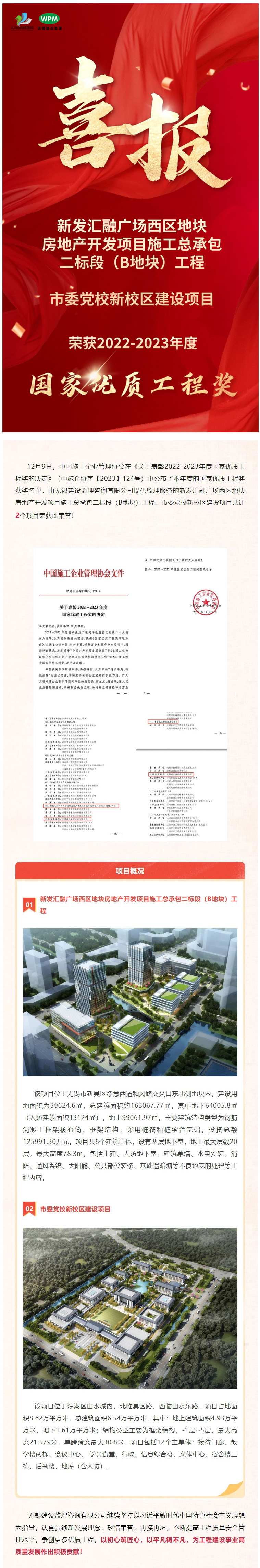 喜报 | 公司2个项目荣获2022-2023年度国家优质工程奖