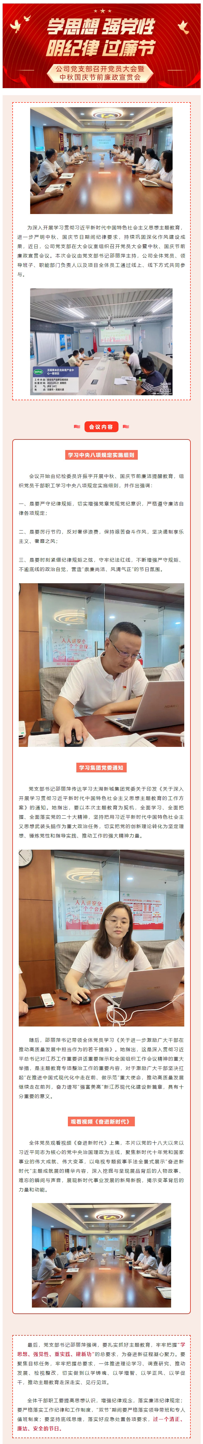学思想 强党性 明纪律 过廉节公司党支部召开党员大会暨中秋国庆节前廉政宣贯会议