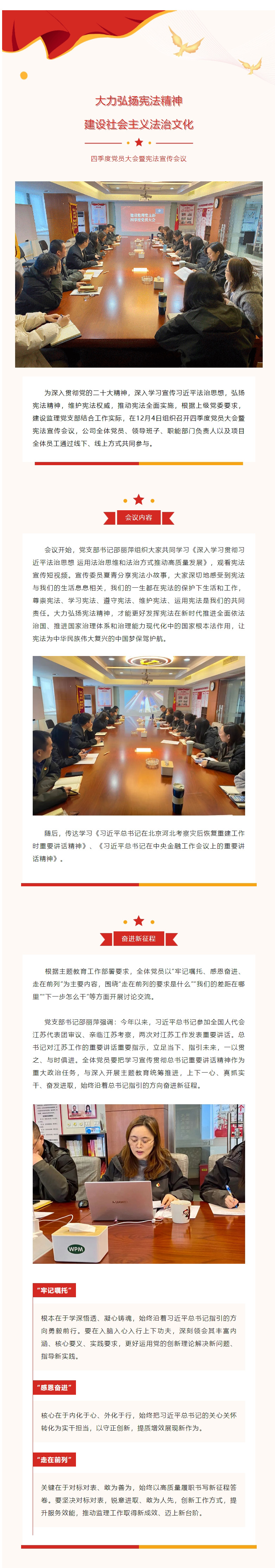 大力弘扬宪法精神,建设社会主义法治文化公司党支部召开四季度党员大会暨宪法宣传会议